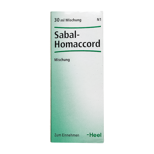 В состав гомеопатического препарата Heel-Sabal - Homaccord входят: Serenoa repens TM 0,9 г, Serenoa repens D10 0,3 г, Serenoa repens D30 0,3 г, Hepar sulfuris Dl 0 0,7 г, Hepar sulfuris D15 0,7 г, Hepar sulfuris D30 0,7 г, Hepar sulfuris D200 0,7 г.