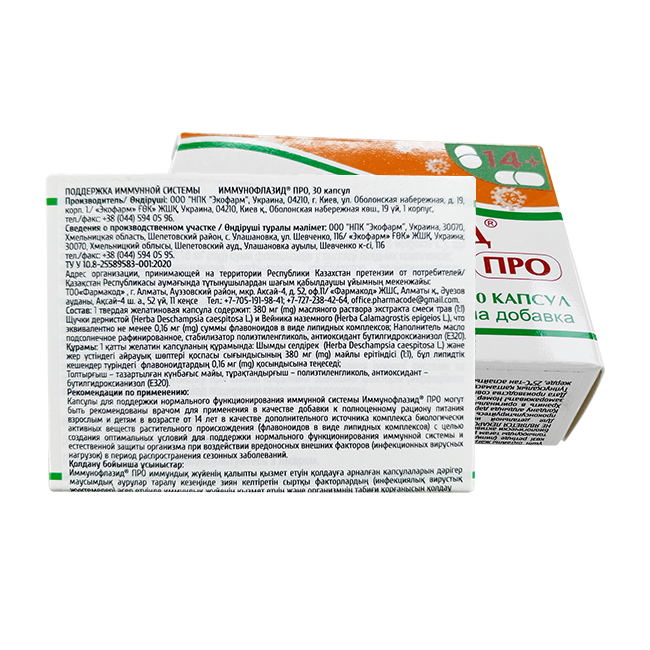 Иммунофлазид ПРО –растительный препарат, созданный на основе экстрактов трав, который оказывает поддерживающее влияние на иммунную систему. Его активные компоненты содержат флавоноиды в виде липидных комплексов, что способствует общему укреплению защитных сил организма и повышению сопротивляемости к неблагоприятным факторам внешней среды.