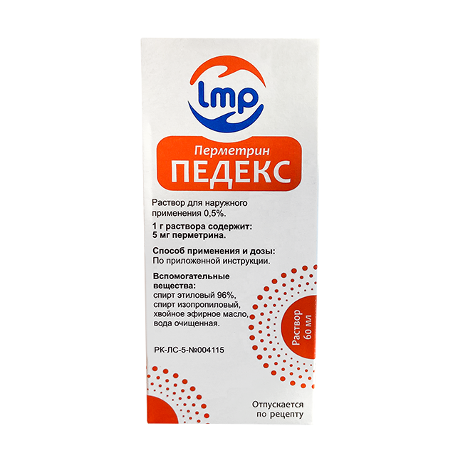 Педекс – паразитарное средство для наружного применения, содержащее активное вещество перметрин в концентрации 0,5%. Применяется в первую очередь, при лечении паразитарных инфекций кожи и волосистой части головы (например, педикулёза).