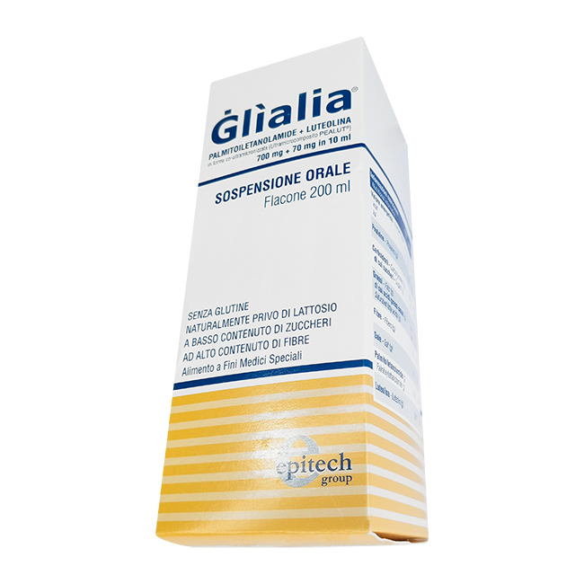 Глиалия сочетает два активных компонента: пальмитоилэтаноламид и лютеолин. Эти вещества обладают различными, но взаимодополняющими фармакологическими свойствами:
