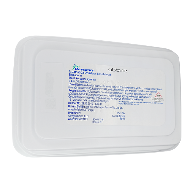 Рестасис —офтальмологическое средство, содержащее циклоспорин A в концентрации 0,05%. Предназначен для лечения сухости глаз, вызванной нарушением функции слезных желез.