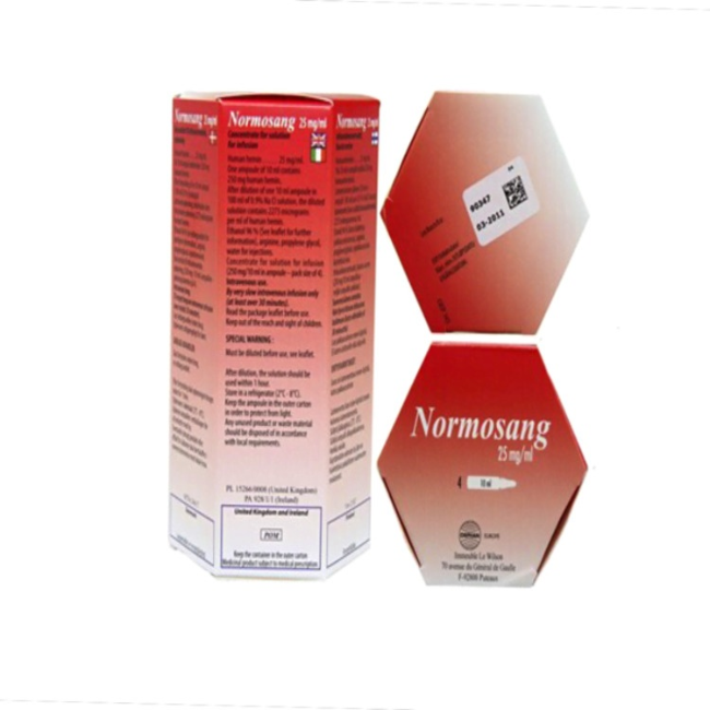 Нормосанг –препарат, содержащий в качестве активного компонента соединения порфирина (гемин). Применяется преимущественно при острых формах печёночных порфирий для снижения концентрации токсичных предшественников порфирина в организме. Он помогает улучшить общее состояние и уменьшить тяжесть симптомов при острых атаках.
