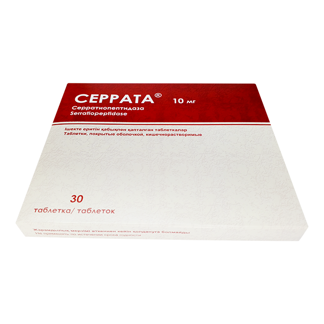 Лечебные свойства препарата определены активным компонентом серратиопептидазой. Вспомогательный состав представлен моногидратом молочного сахара, крахмалом кукурузным, магния карбонатом и стеаратом, натрия крахмалом гликолятом, титана диокисью, гипромеллозой, триацетином, диэтилфталатом, кислотой стеариновой, поливинилацетата фталатом, водой очищенной, спиртом изопропиловым, дихлорметаном.