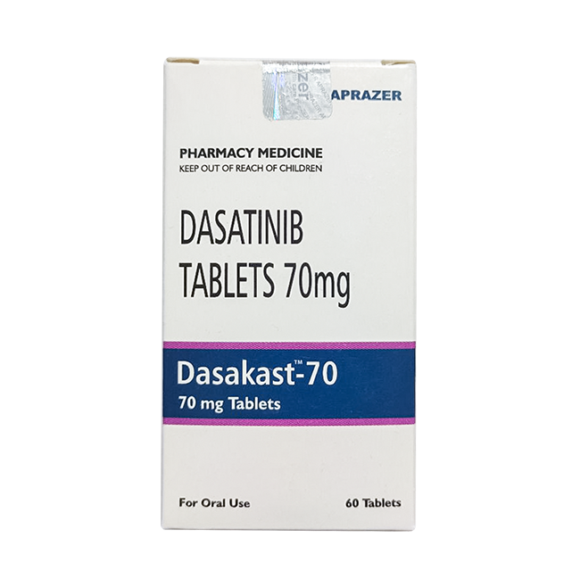 Обратите внимание: Dasakast содержит 70 мг дазатиниба в одной таблетке. При необходимости 100 мг врач может рекомендовать комбинировать таблетки разной дозировки (например, 70 мг + 30 мг) или перейти на другую форму выпуска.