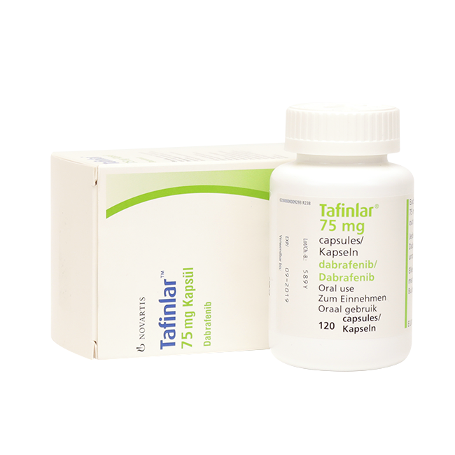 Препарат Тафинлар® в монотерапии и в комбинации с траметинибом показан для лечения пациентов с нерезектабельной или метастической меланомои с мутацией гена BRAF V600.