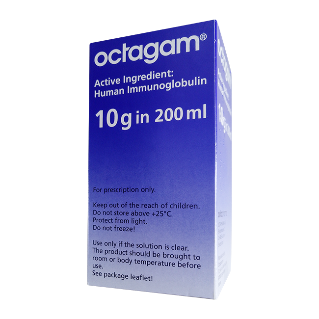 Попадая в кровоток пациента, Октагам быстро и равномерно распространяется по внеклеточному пространству. Максимальная концентрация IgG в плазме достигается сразу. Период полувыведения обычно составляет от 3 до 4 недель, что зависит от состояния пациента и применяемой дозы.