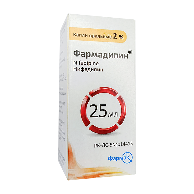 Капли характеризуются высокой скоростью абсорбции в органах пищеварительной системы и средней биодоступностью – в пределах 40-60%. Если принимать лекарство сублингвальным путем, то фармакологическое действие наблюдается спустя 5-10 минут, иногда для достижения эффекта требуется 30-40 минут. Снижение артериального давления происходит независимо от того, употребляется Фармадипин вместе с пищей или отдельно. Процесс метаболизации происходит в печени, на выведение 50% требуется от 120 минут до 240 минут. Замедленный обмен нифедипина наблюдается у больных с циррозом, поэтому им дозировку в два раза снижают и делают более длительные интервалы между приемами. Небольшое количество активного компонента фиксируется в грудном молоке.