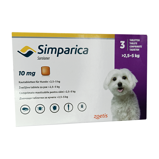 Симпарика для собак 10мг 2,5-5кг ГЕРМАНИЯ! табл. для пер. пр. N3