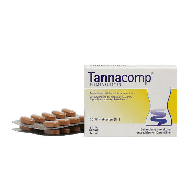 Таннакомп - комбинированный противодиарейный препарат. Содержит полученный из природного сырья танина альбуминат, представляющий собой соеди-ненную с одним из белков дубильную кислоту, и этакридина лактат, обладающий антибактериальным и спазмолитическим действием.